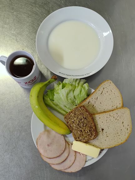 W dniu 18.10.2024r na obiad dla pacjentów diety podstawowej podano napój z kisielu z bananem 0,25l (zamiast napoju z kisielu 0,25l), co zmieni wartość kaloryczną i odżywczą